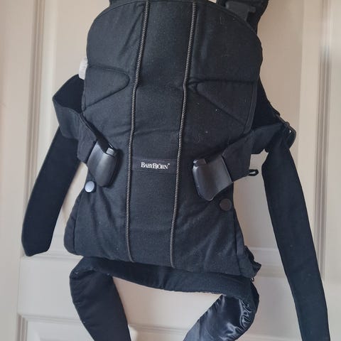 BabyBjörn Baby Carrier Original bæresele i svart. Klassisk bæresele for bæring av baby på mage, med justerbare skulderremmer og belter for tilpasning til bruker og barn. Selen har enkel åpne- og lukkemekanisme foran slik at barnet kan løftes ut uten at hele selen må tas av. Passer til bæring med barnet vendt innover mot den som bærer, og etter hvert også vendt utover i kortere perioder, i tråd med produsentens anbefalinger. Tekstilmateriale med polstring gir støtte rundt rygg, hode og nakke. Leveres med original eske og bruksanvisning dersom dette er inkludert på bildene.