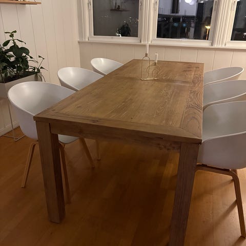 Spisebord fra Home & cottage kjøpt nytt for 4 år siden. Bordet er 1x2 meter, følger også med 2 ekstra lemmer slik at bordet blir 3 meter langt.