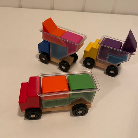 Nesten 50 brio-lignende leker – noen ekte brio, noen Thomas og noen andre merker. Alle er velkjente, men laget av tre, slik at de kan lekes med i mange år fremover. De inkluderer noen bilvaskerier, en fancy bro, lekeplassutstyr, en tunnel, støtter for stigninger og mange kjøretøy.