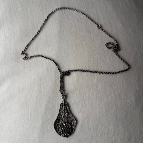 Dette er et halskjede laget av tinn, fra den norske produsenten Tinn-Per.