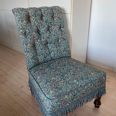Pent brukt vintage lenestol med grønn velur