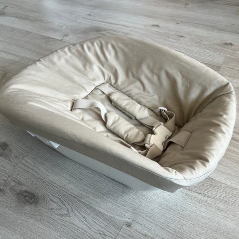 Pent brukt nyfødtsete til Tripp Trapp-stol med hvit base. .