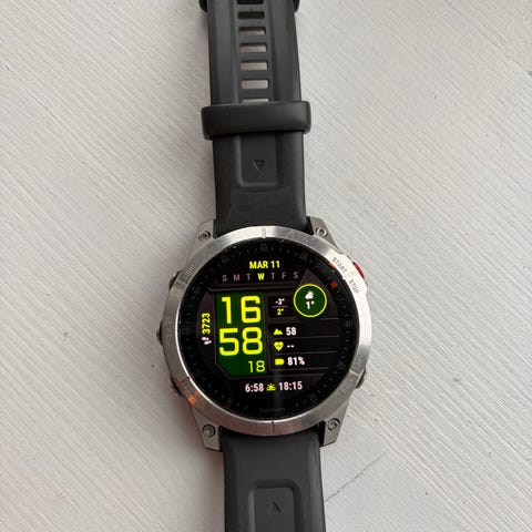 Helt ny ubrukt Garmin Epix Gen 2 smartklokke med 47 mm urkasse og svart reim. Klokken har rund skjerm og flere fysiske knapper på siden. Egner seg til aktivitets- og treningsregistrering, samt daglig bruk. Passer for voksne brukere.