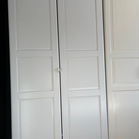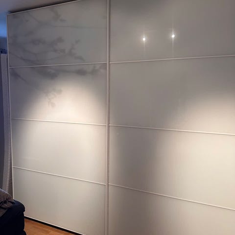 Skyvegarderobe gis bort mot henting. 3st dører 'a 90x234 plus de skinnene over å under.. hull i ene døra,kan repareres men også mulig å bruke 2 dører (størrelse blir da 180cm) hvis man kutter skinnene.. (må hentes komplett). Ser ut som bokhyller.. gull..