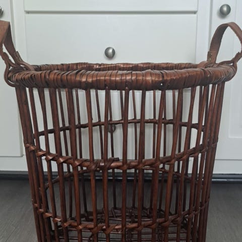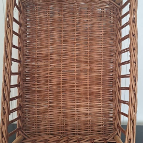 Kurv med lokk i flettet rotting. Kurven er rund med bærehåndtak på sidene og hengslet lokk på toppen. Egner seg til oppbevaring av tekstiler, leker eller annet smått i hjemmet. Naturlig rotting gir et nøytralt og tidløst uttrykk som passer i ulike rom. Høyde 65 cm.
