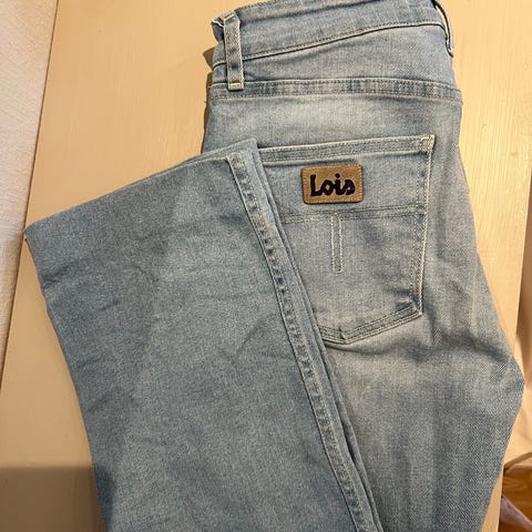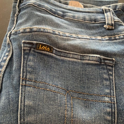 Lois Malena jeans for dame i størrelse S med livvidde W27. Buksen er i blå denim av bomull. Klassisk femlommersmodell med glidelås og knapp i front.