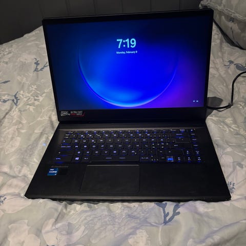 MSI GF63 Thin 9SCXR bærbar PC med 15,6-tommers skjerm i svart utførelse. Maskinen har Intel Core i5-9300H prosessor på 2,40 GHz og 8 GB RAM. Tastaturet har rød bakbelysning. Lokket er dekorert med klistremerker. Egner seg til generell bruk som skolearbeid, kontoroppgaver og underholdning. Strømkabel følger med etter det som vises på bildene.