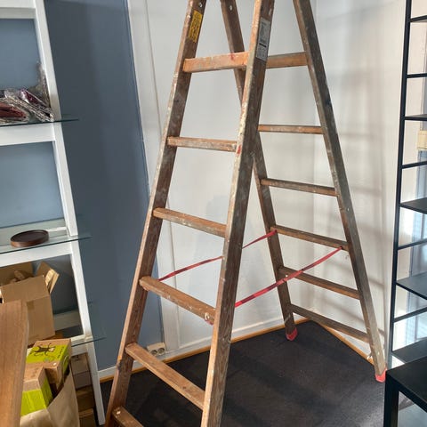 Gammel trestige med fem trinn til salg. I god stand med noen bruksmerker. Tror den er merket « Breen Nakkerud»