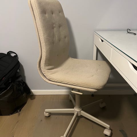 Pent brukt i omtrent 1 år. Ny pris 3594 kr. Stolen må hentes på Langhus av kjøper.
