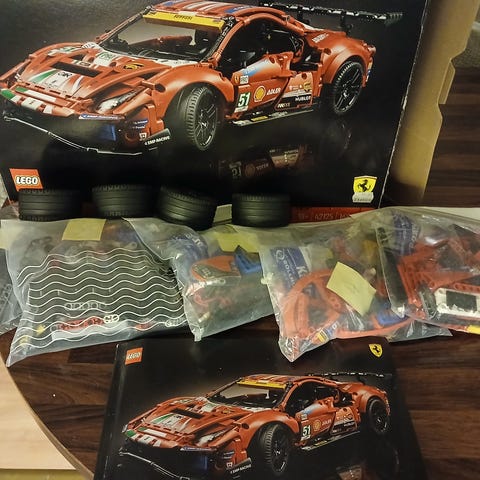 Helt ny og uåpnet Lego 42125. Kan hentes i Lillehammer eller Lillestrøm men kun etter avtale. Bor i Lillehammer men jobber i Lillestrøm. LEGO Technic Ferrari 488 GTE byggesett i rød farge. Modellen er en detaljert racerbilsreplika med tekniske funksjoner som typisk inkluderer bevegelige deler og realistiske designelementer. Settet består av mange deler og er beregnet for byggere fra 18 år og oppover. Egnet for bygging, utstilling og som samlerobjekt for LEGO Technic- og bilinteresserte.
