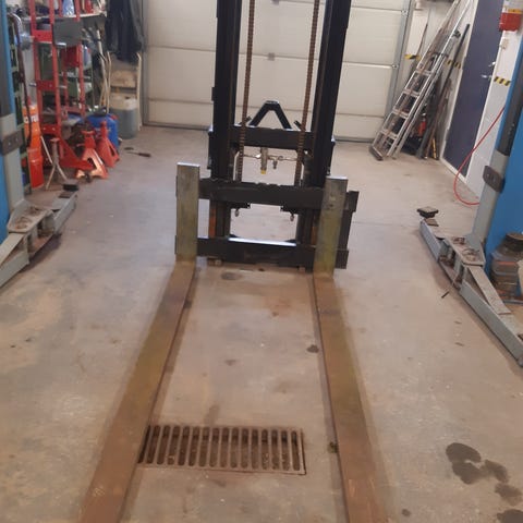 Truktårn til traktor med trepunkt feste kat 2. tårnet er i bra stand, løfter ca 4-4,5 meter. 120cm gaffler.