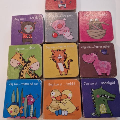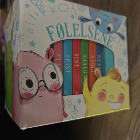 6 små bøker om følelsene. Omslagene bærer preg av at de er lest (mye!), inni er de veldig fine 😊