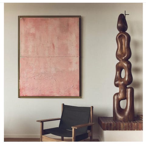 Framed Artwork Thousand Layers fra HKliving er et unikt, håndmalt innrammet maleri som raskt blir rommets blikkfang. Det abstrakte motivet i monokrome rosatoner har en lagdelt struktur og de tydelige penselstrøkene på linlerretet tilfører både dybde og taktilitet til veggen. Den gule akrylrammen gir maleriet det lille ekstra. Heng det opp alene som et statement-element, eller kombiner det med andre kunstverk – for eksempel ved å leke med komplementærfarger i møbler og objekter for å skape en harmonisk og helhetlig følelse i rommet. Det ferdig innrammede maleriet kommer i en generøs dimensjon på B127 x L167 cm.