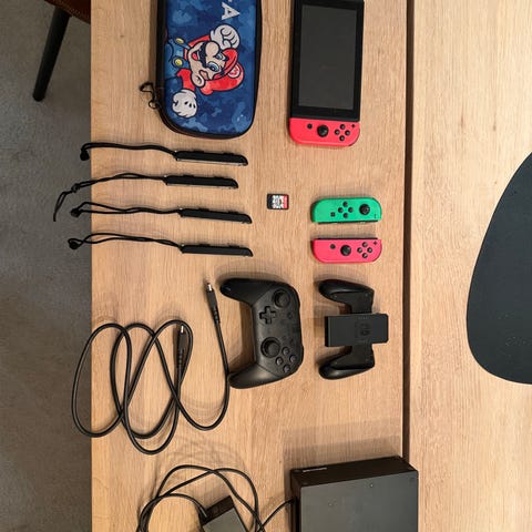 Nintendo Switch spillkonsoll med dokkingstasjon og Joy-Con blå/rød