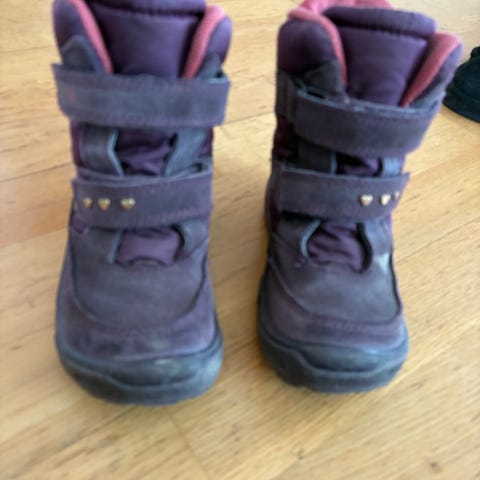 Ecco vintersko for jente i størrelse 25. Skoene er i burgunderfarge med lisser og glidelås på siden for enkel av- og påtaking. Overdelen er i et glatt materiale med forsterket tåparti. Innvendig er skoene fôret med mykt, lyst fôr som gir ekstra varme. Yttersålen er i gummi med mønster for bedre grep på underlaget. Egner seg som vintersko til barn i barnehage- og småskolealder.