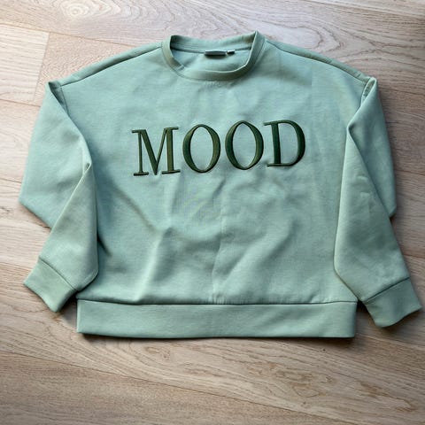 Careless genser for dame i størrelse XL. Fargen heter smoke green. Den har rund hals. Tekstmotiv på brystet. Pent brukt.Myk og behagelig genser.