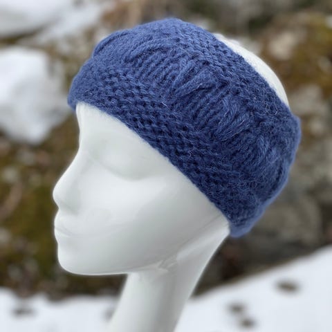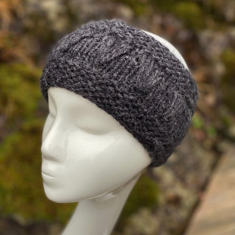 Mykt, behagelig pannebånd, håndstrikket i godt garn som inneholder alpakka og ull.