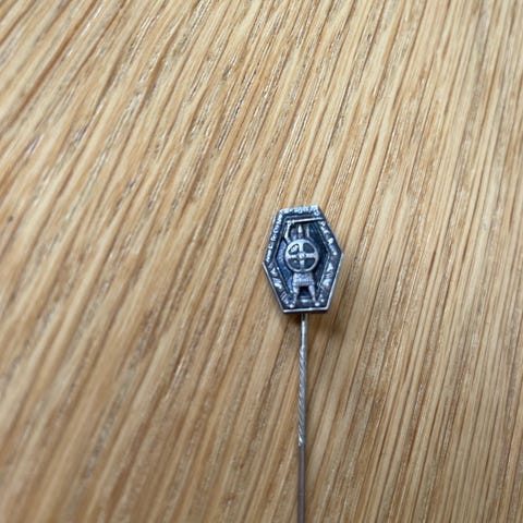 Dette er en "Norges Forsvar" jakkenål/ pin fra omtrent 1950, som ble utgitt av Landsforeningen for Norges Forsvar.