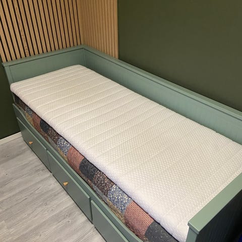 Egner seg som ekstra komfortlag oppå eksisterende madrass i seng eller sovesofa. Kan rulles eller brettes for enkel lagring og transport.