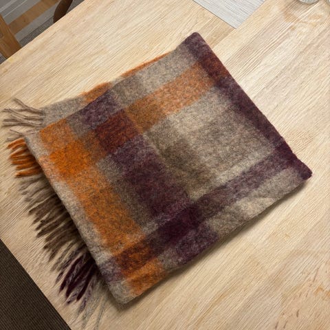 Lekkert skjerf i mohair, alpaca og ull i nydelige farger. Str er 197 (pluss frynser) x 41 cm. Skjerfet er ubrukt.
