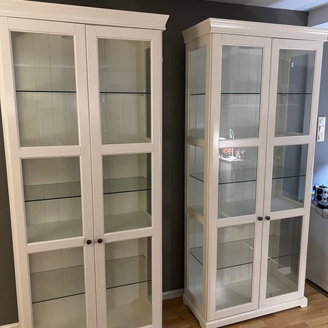 Selger to stk klesskap/garderobeskap, hvite med hyller. Noen skavanker men i fin stand. 1000kr pr stk!