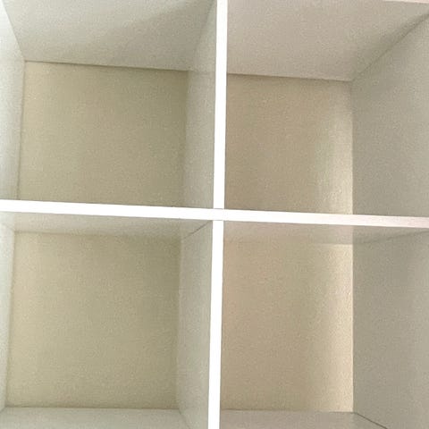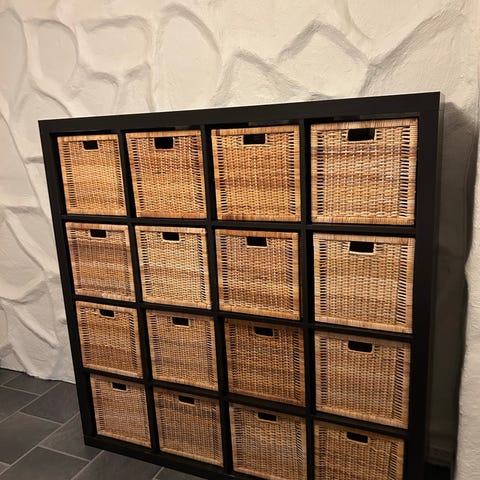 Kallar hylle med ett skuffeinnlegg og en deler, to små riper.