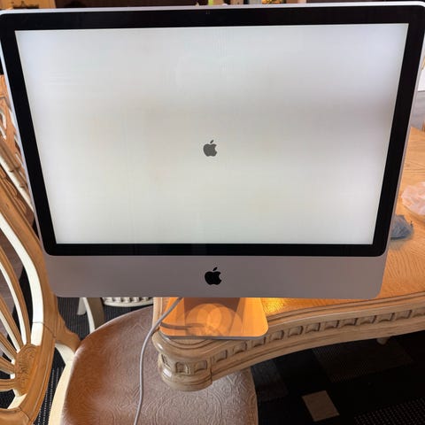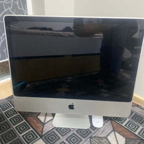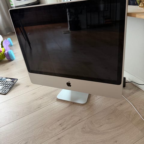 Apple iMac 20-tommers stasjonær PC. All-in-one skrivebordsmaskin med innebygd skjerm og maskinvare i samme enhet. Skjermen er på 20 tommer, og enheten har flere tilkoblingsporter på baksiden for blant annet USB og nettverk. Egnet til grunnleggende kontorarbeid, enkel nettbruk og lagring av filer, avhengig av installert maskinvare og programvareversjon. Modellen er en eldre generasjon iMac, noe som kan påvirke støtte for nyere operativsystemer og programmer.