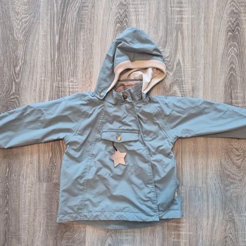 MINI A TURE jakke til gutt i størrelse 86, blå farge. Modellen har hette, ribbestrikkede mansjetter i ermene og lukkes med glidelås og knapper foran. Glidelås på skrå, god passform, plass til tykk genser og langvarig bruk. Praktisk brystlomme med knapp og dekorativ stjernehempe. Passer som ytterjakke for små barn. En favoritt her hjemme.