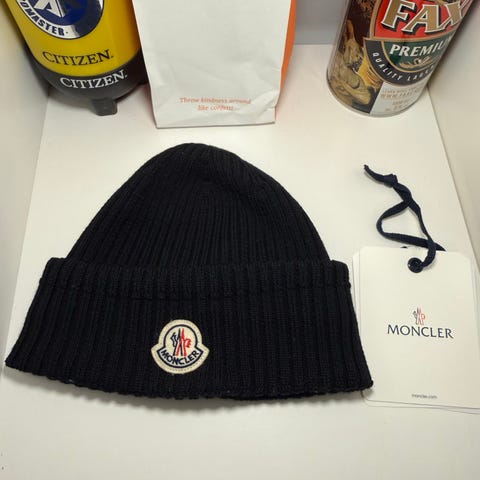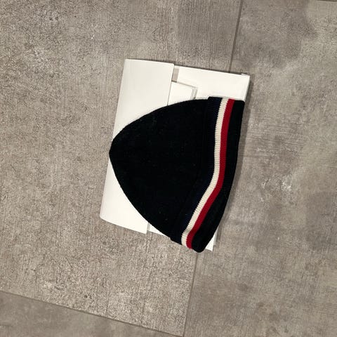 Selger min Moncler beanie da den ikke passer for meg lengre. Pent brukt og ikke noe skade på den.