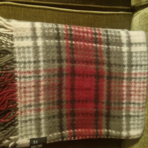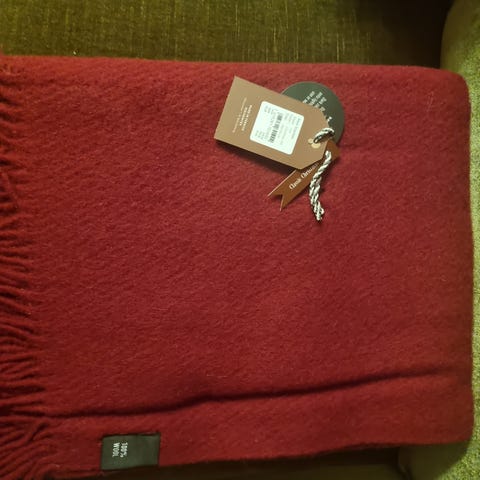 Selger ubrukt ullpledd i 100 % ull. Pleddet er fra Kid og måler 130 x 170 cm.