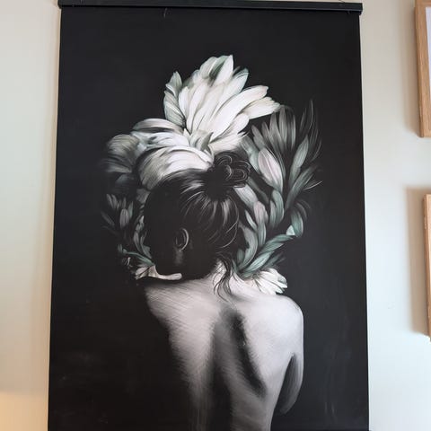 Selger et stort fint bilde med gullramme designet av Linn Wold 70x100