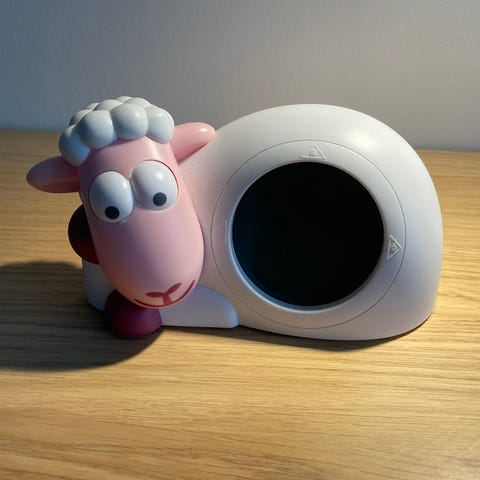 Zazu Sam Sleeptrainer vekkerklokke med nattlys i form av en sau i grå og hvit farge. Klokken har digitalt display som viser tid, og lysfunksjon som kan brukes som nattlys på barnerom. Leveres med tilhørende ladekabel og original eske. Egnet for barn som trenger visuell hjelp til å vite når det er tid for å sove og stå opp.