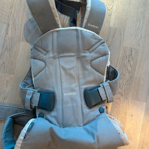En helt super bæresele som vi hadde mye glede av, typen Baby Carrier One. Rikelig med justeringer slik at den kan brukes helt fra fødselen av og opptil ca 4 år. Noen bruksmerker, masse god bruk igjen i denne. Trener nok en vask.