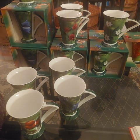 4 flotte kopper med hank. Pastoral Style keramiske kopper med fine mønster og ulike farger.