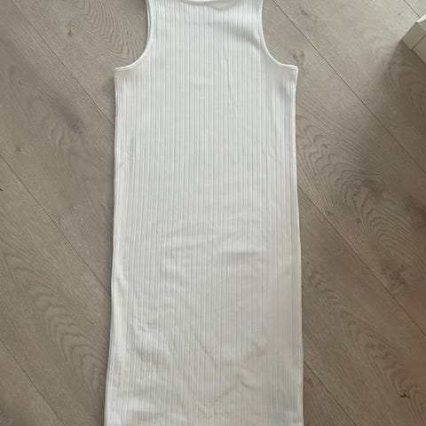 NA-KD hverdagskjole i ribbestrikket bomull. Kjolen er ermeløs med tettsittende passform og rett, lang fasong. Størrelse XS. Farge hvit. Materiale i bomull gjør kjolen myk og behagelig til hverdagsbruk.