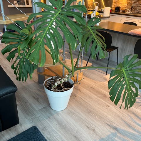 En stor grønn plante søker et nytt hjem til noen som er mer interessert i grønne planter.