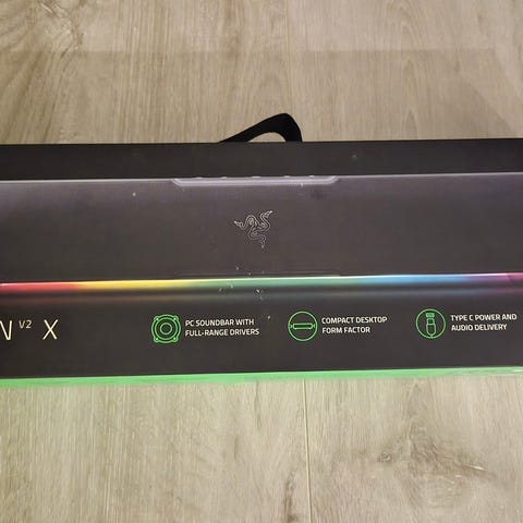 Kun prøvd, Razer Leviathan V2 X lydplanke til PC. Kompakt lydplanke beregnet for bruk med datamaskin. Modellen har RGB-belysning langs fronten og er laget for å plasseres under skjerm på skrivebord. Tilkobles PC for å gi bedre lydopplevelse ved bruk av datamaskin, for eksempel til spilling, film og musikk.