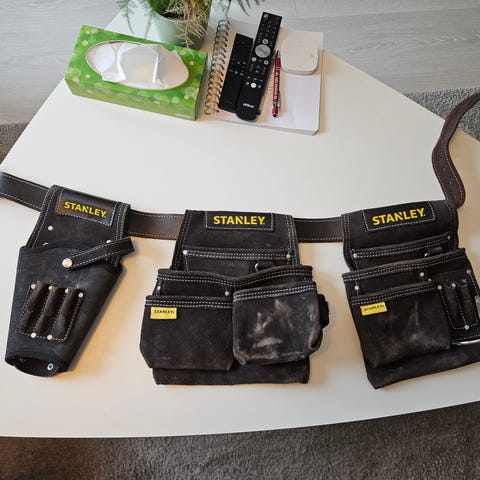 Stanley FatMax verktøyvest i svart og gul farge. Vesten har flere lommer og holdere til verktøy og tilbehør, inkludert åpne og lukkede lommer, hemper og D-ring for feste av utstyr. Glidelåslukking i front og justerbare stropper bak for tilpasning av passform. Refleksdetaljer på front og rygg for bedre synlighet. Egnet som arbeidsvest for håndverkere og andre som trenger lett tilgang til verktøy under arbeid.
