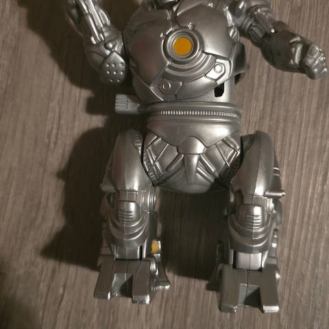 Leker figur i plast med stor overdimensjonert arm. Figuren har grønn- og svartstripet genser, beige bukse og brunt hår. Den er laget som en liten samlerfigur/leke som kan brukes til lek eller som pynt på hylle eller skrivebord. Egner seg for barn som liker actionfigurer eller som del av en samling av små plastfigurer.Dette er en Fury Fists Sandman-figur, som ble utgitt av Burger King i 2006 som en del av en kampanje for filmen Spider-Man 3.