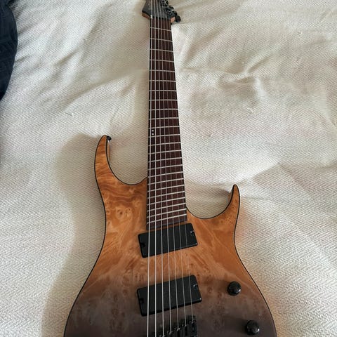 Morgan elektrisk gitar i hvit finish. Kropp med enkelt cutaway og to humbucker-pickuper. Gitaren har 4 kontrollknapper (volum og tone) og 3-veis pickup-bryter. Fast stol og stop tailpiece. Rosewood-lignende gripebrett med innfelte posisjonsmarkører. Leveres i polstret gigbag som vist på bildene.