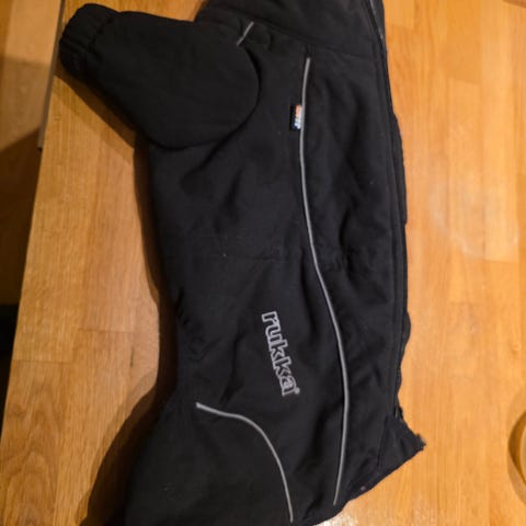 Hurtta vinterdress for hund i størrelse 30S. Dressen er svart med mønstret, sølvfarget innside. Den dekker kropp og bein, og har stramming ved halsen for bedre passform. Egnet som ytterplagg til hund i kaldt vær for å gi ekstra beskyttelse mot kulde og vind. Brukt 2 ganger på korte turer da senioren har foretrukket andre dekken.