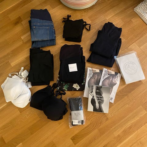 Nydelig og praktisk sett med mammaklær fra Seraphine. Fin både som gravid og barseltiden (med ammeklips på nattkjole), særlig på sykehuset.