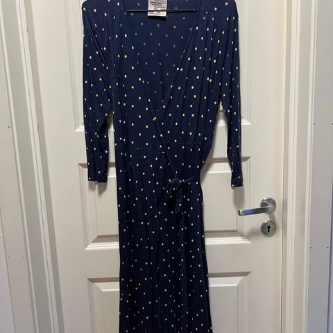 Farge marineblå. Stoffet er tykk viskose, holder seg pent i vask.