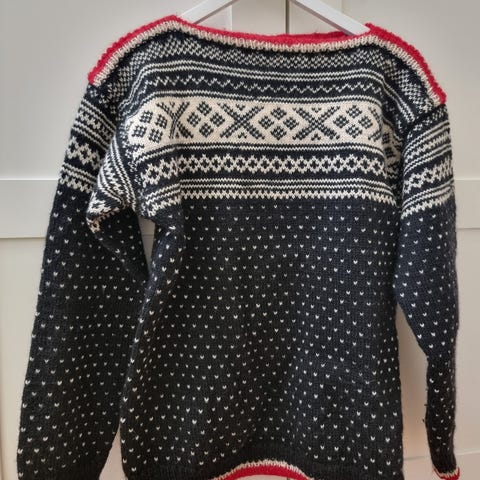God og varm hjemmestrikket Setesdal ullgenser. Str. L. Genseren er lite brukt.