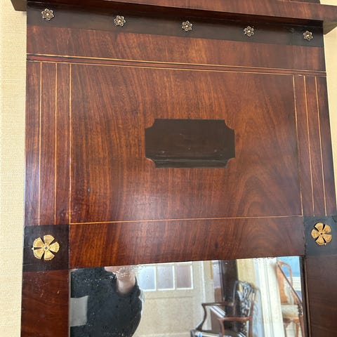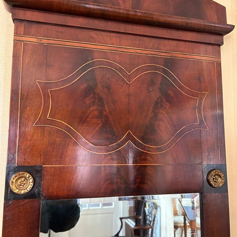 Gammelt mahogni speil fra 1830-1850. Nyrestaurert og i fin stand.