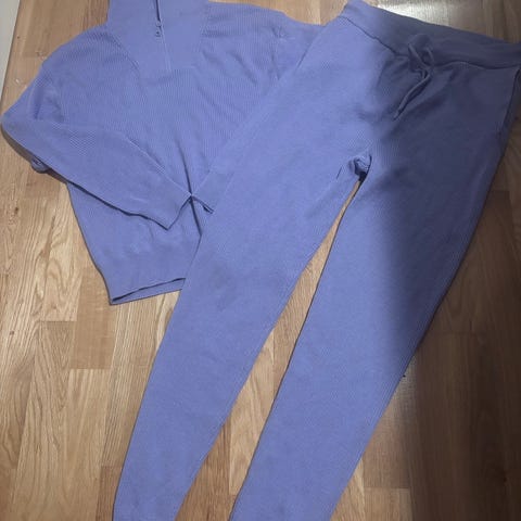 Genser og longs i mørk blå. Genser er brukt et par ganger og buksen er ubrukt med lappen på.