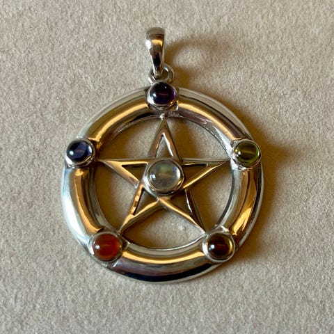 Nydelig Chakra smykke i 925S selges. Det er 4 cm høyt og 2,8 cm bredt med 7 stener, en for hvert chakra.