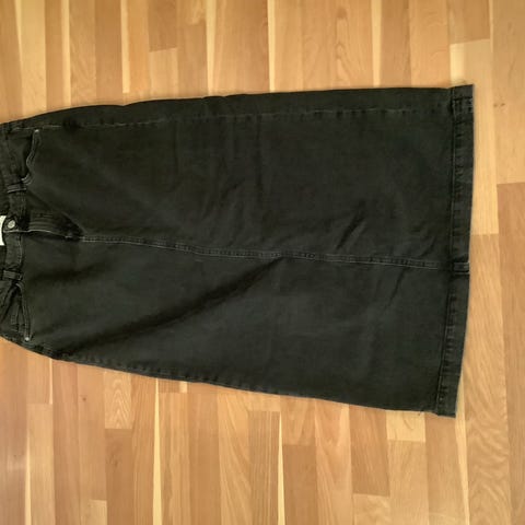 Tubeskjørt i jeans cordstoff og form fra Juicy jeans. Splitt i front. Knelangt.