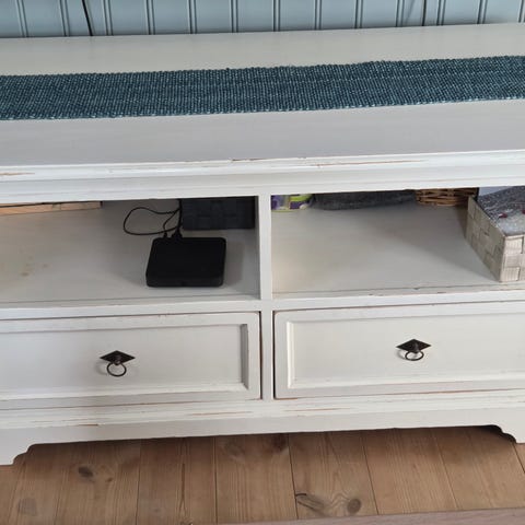 Brukt men fullt brukbar kommode. Mangler en del mellom to skuffer, men har ingen praktisk betydning.
