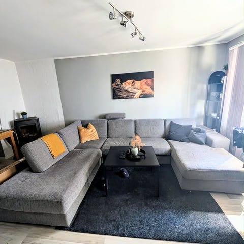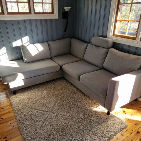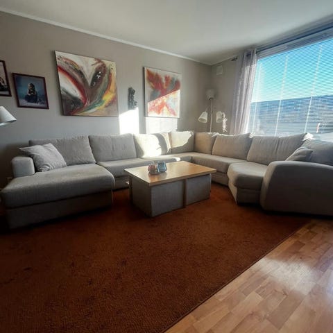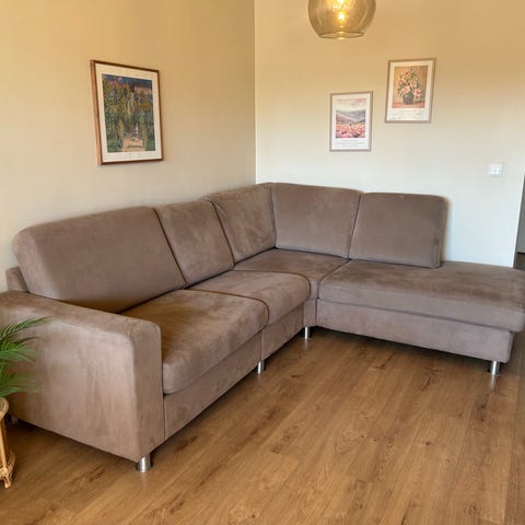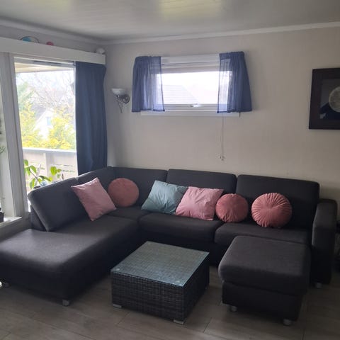 Sofaen selges grunnet flytting. Sofaen er god å sitte i eller slappe av i! Den har en liten "dump" i midten hvor den går litt ned. Men det er ingenting av betydning, (bare legge en pute foran). Ellers er sofaen en fin familie sofa, med passe størrelse og farge til stuen. Går til det meste!